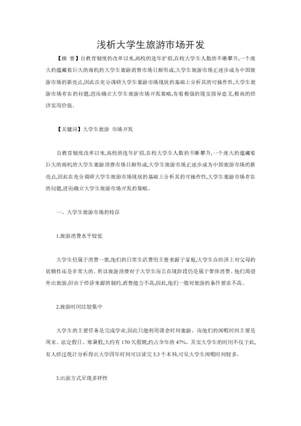 淺析大學(xué)生旅游市場開發(fā)