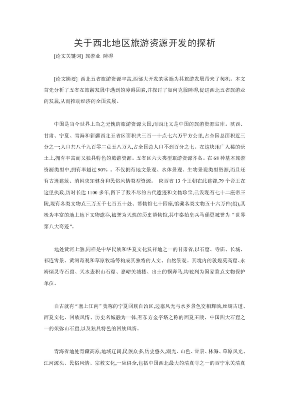 關(guān)于西北地區(qū)旅游資源開(kāi)發(fā)的探析(19.50KB)