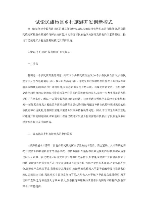 試論民族地區(qū)鄉(xiāng)村旅游開發(fā)創(chuàng)新模式