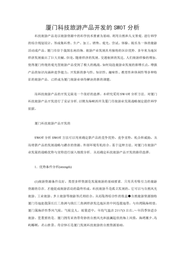 廈門科技旅游產品開發的SW0T分析