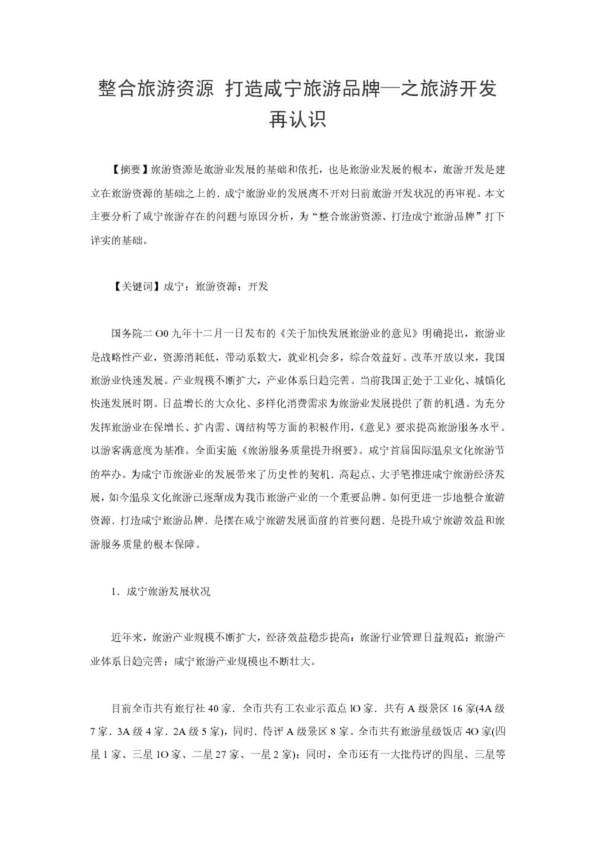 整合旅游資源 打造咸寧旅游品牌—之旅游開發再認識