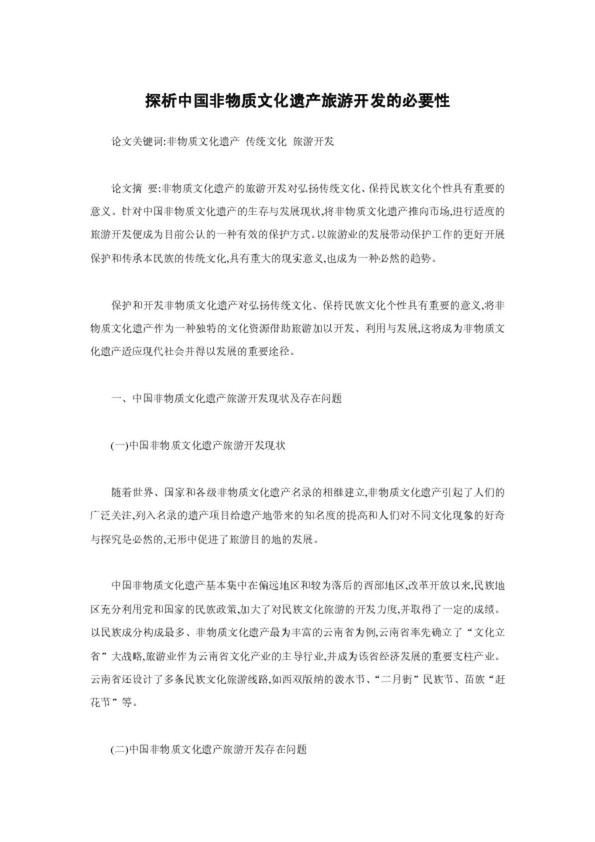 探析中國(guó)非物質(zhì)文化遺產(chǎn)旅游開(kāi)發(fā)的必要性