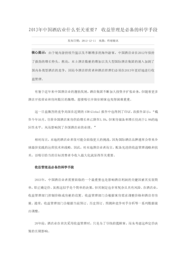 2013年中國酒店業什么至關重要? 收益管理是必備的科學手段(20.50KB)