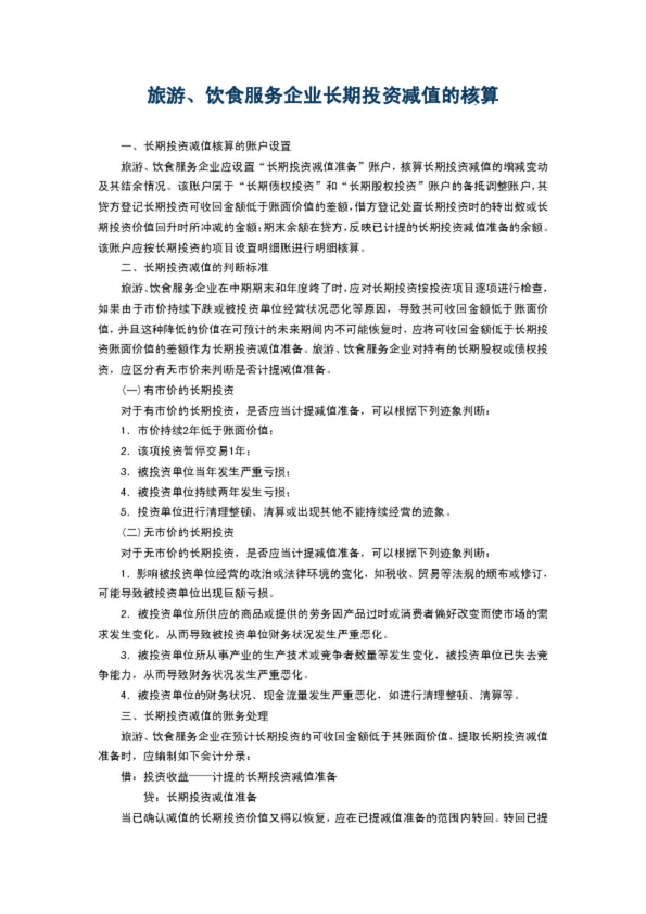 旅游、飲食服務企業長期投資減值的核算(19.00KB)