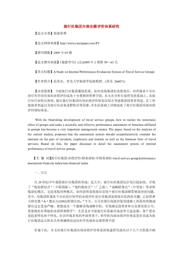 旅行社集團內部業績評價體系研究,,如何實現集團的系統效應,對所屬各個分社進行科學而有效的業績評價成為十分重要的管理手段。本文在分析目前研究的基礎上,從旅行社行業...