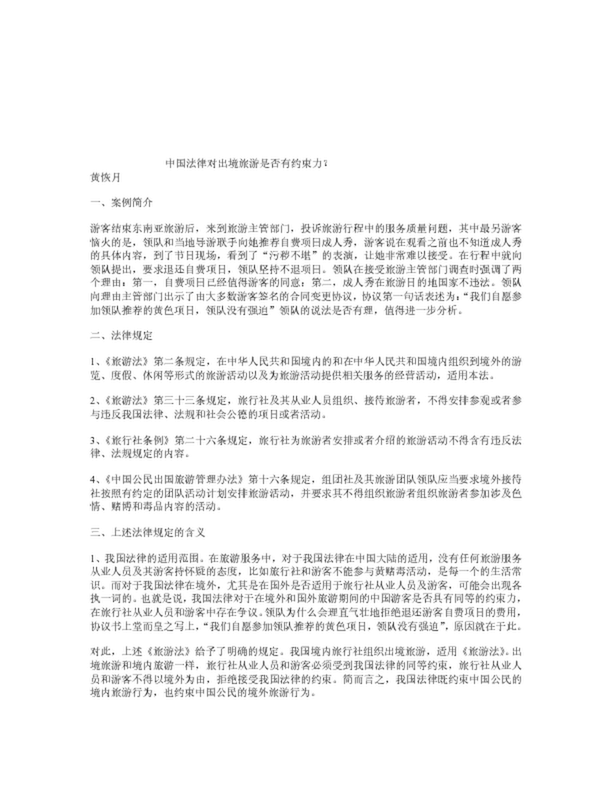 中國法律對出境旅游是否有約束力?