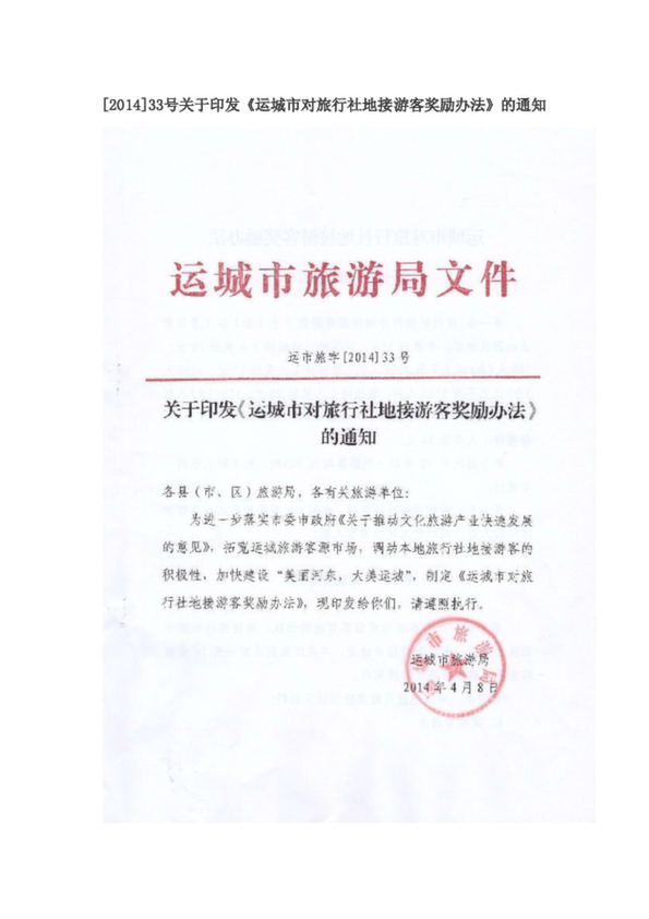 [2014]33號關于印發《運城市對旅行社地接游客獎勵辦法》的通知(0.25MB)