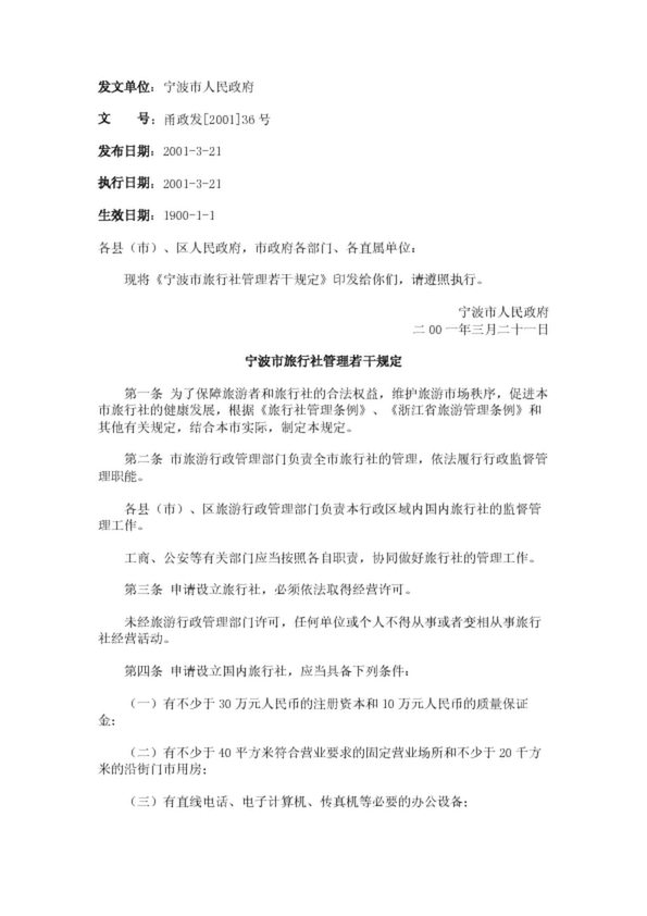 寧波市人民政府關于印發寧波市旅行社管理若干規定的通知(4.40KB)