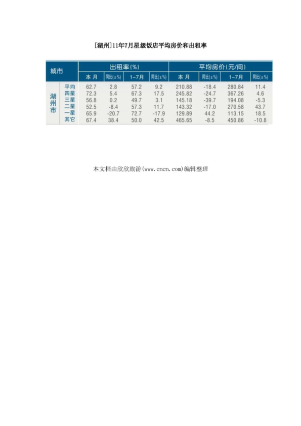 [湖州]11年7月星級(jí)飯店平均房?jī)r(jià)和出租率