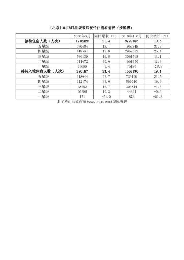 [北京]10年6月星級飯店接待住宿者情況(按星級)