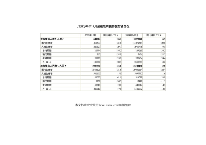 [北京]09年12月星級飯店接待住宿者情況