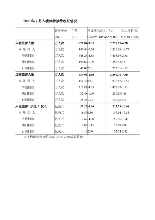 2009年7月入境旅游接待收匯情況(34.62KB)