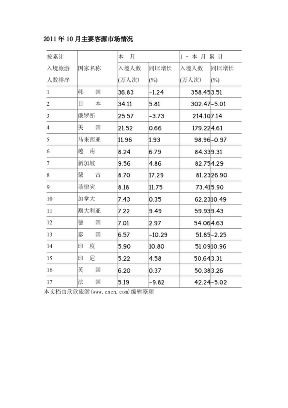 2008年 1-10入境旅游外國人人數(shù) (目的累計)