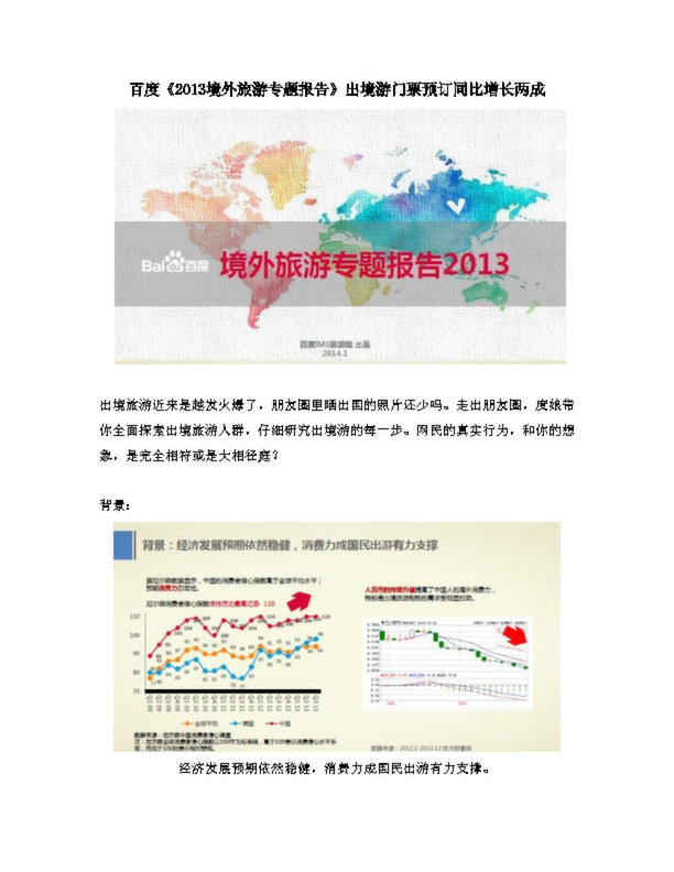 百度《2013境外旅游專題報(bào)告》出境游門(mén)票預(yù)訂同比增長(zhǎng)兩成