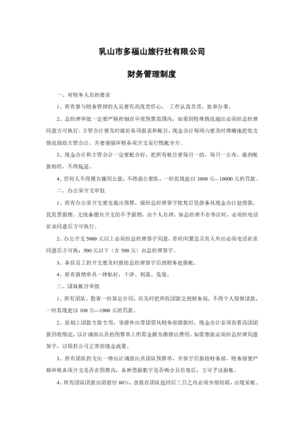 非常實用的旅行社財務管理制度,適合組團為主的旅行社常用制度精華!旅行社財務管理制度一、對財務人員的要求 1、所有..