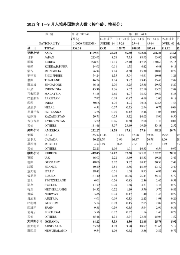 2013年1-9月入境外國游客人數(按年齡、性別分)