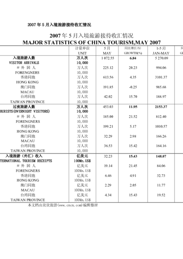 2007年5月入境旅游接待收匯情況(0.11MB)