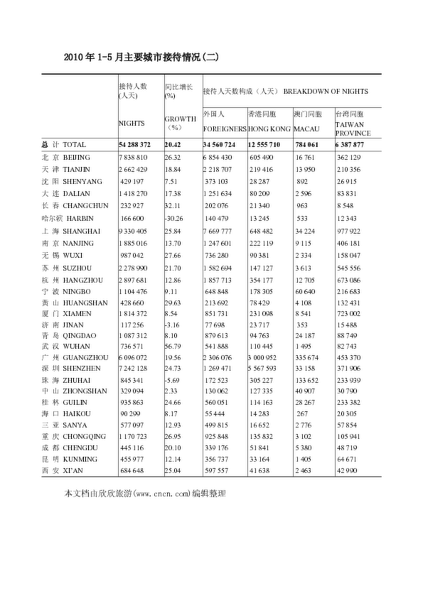 2010年1-5月主要城市接待情況(二)