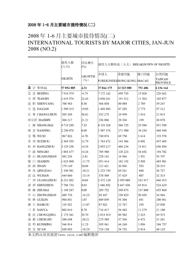 2008年1-6月主要城市接待情況(二)(86.87KB)