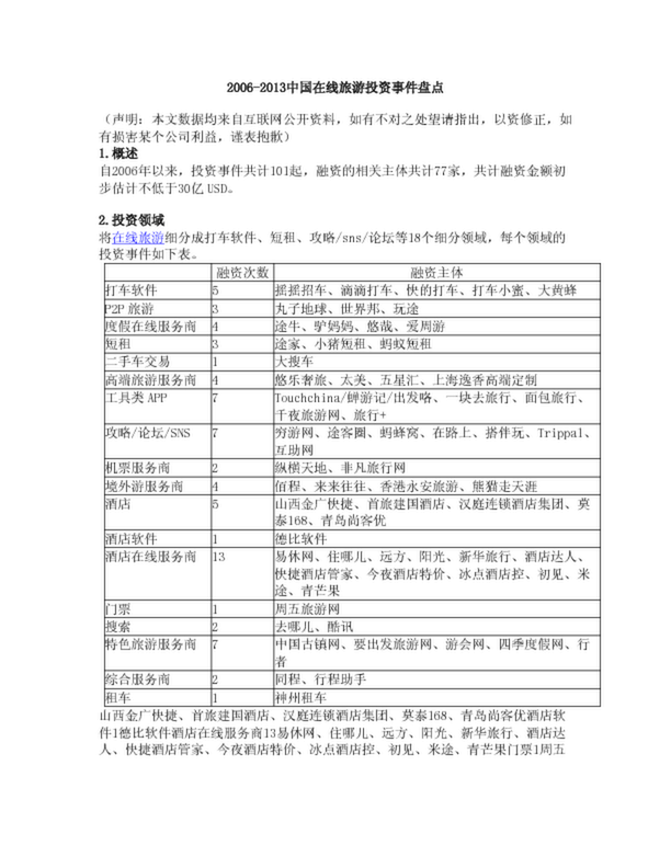 2006-2013中國在線旅游投資事件盤點(0.20MB)