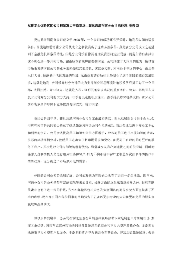 發揮本土優勢優化公司構架發力中原市場—捷達旅游河南分公司總經理 王俊杰