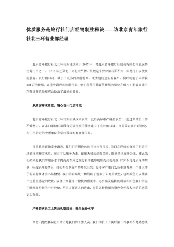 優質服務是旅行社門店經銷制勝秘訣——訪北京青年旅行社北三環營業部經理(13.50KB)
