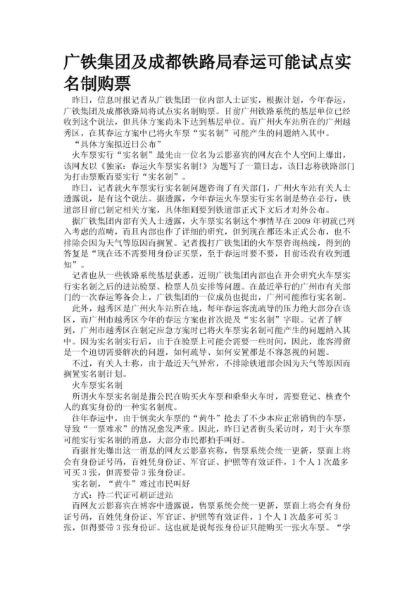 廣鐵集團(tuán)及成都鐵路局春運(yùn)可能試點(diǎn)實(shí)名制購票