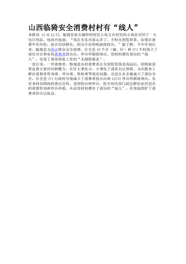 山西臨猗安全消費村村有“線人”
