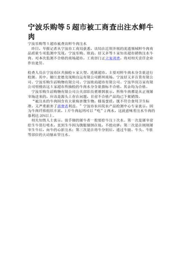 寧波樂購等5超市被工商查出注水鮮牛肉