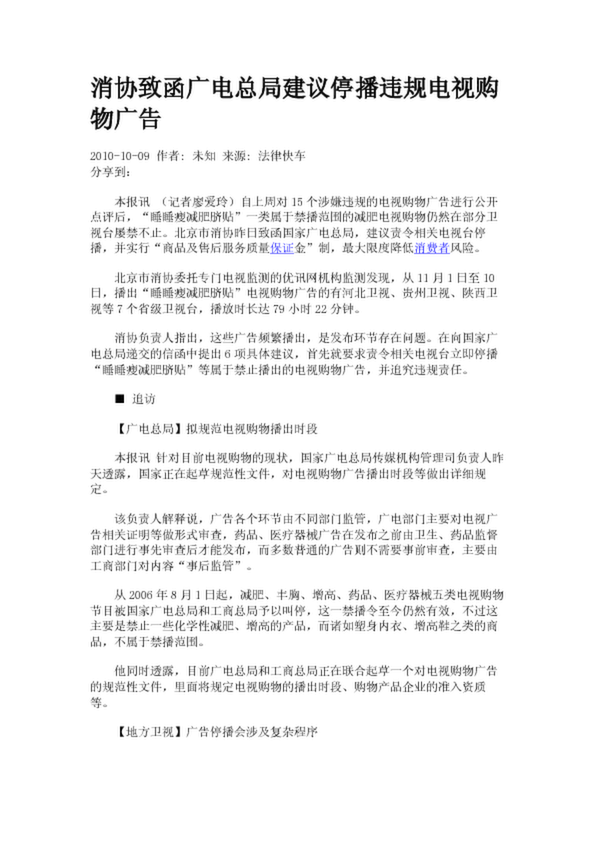 消協(xié)致函廣電總局建議停播違規(guī)電視購物廣告