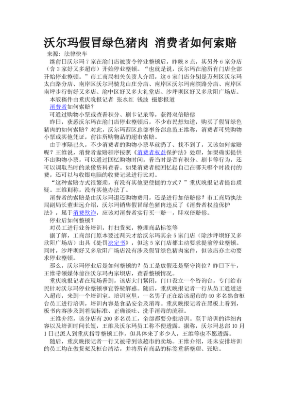沃爾瑪假冒綠色豬肉 消費者如何索賠